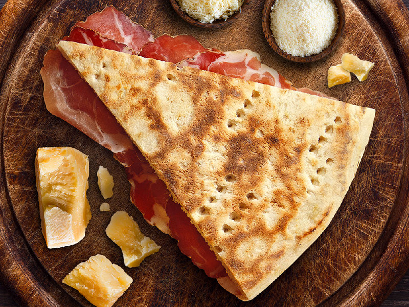 Questa è LA ricetta. La torta al testo è ciò che non può mai mancare sulla tavola di un umbro, spesso usata come pane oppure mangiata insieme ai nostri salumi e formaggi tipici, fino ad arrivare ai condimenti dolci.Quella che vi propone la nostra Nonna Montecristo è la ricetta un po' più ricca, con il formaggio nell'impasto. Ovviamente, come ogni ricetta tradizionale che si rispetti, la Torta al testo umbra presenta moltissime varianti. Ogni paese e ogni nonna la fa a modo suo, ma vi garantiamo che questa è davvero unica nel suo genere.